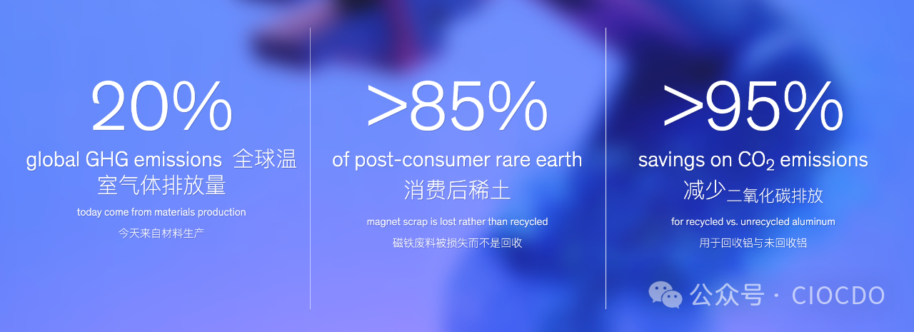 “当我们最初着手使用回收稀土制造磁铁时,这感觉像个几乎不可能完成的任务。今天,我们产品中几乎所有磁铁都由100%回收稀土制成……对于循环性,你常常必须从证明‘什么是可能的’开始。”