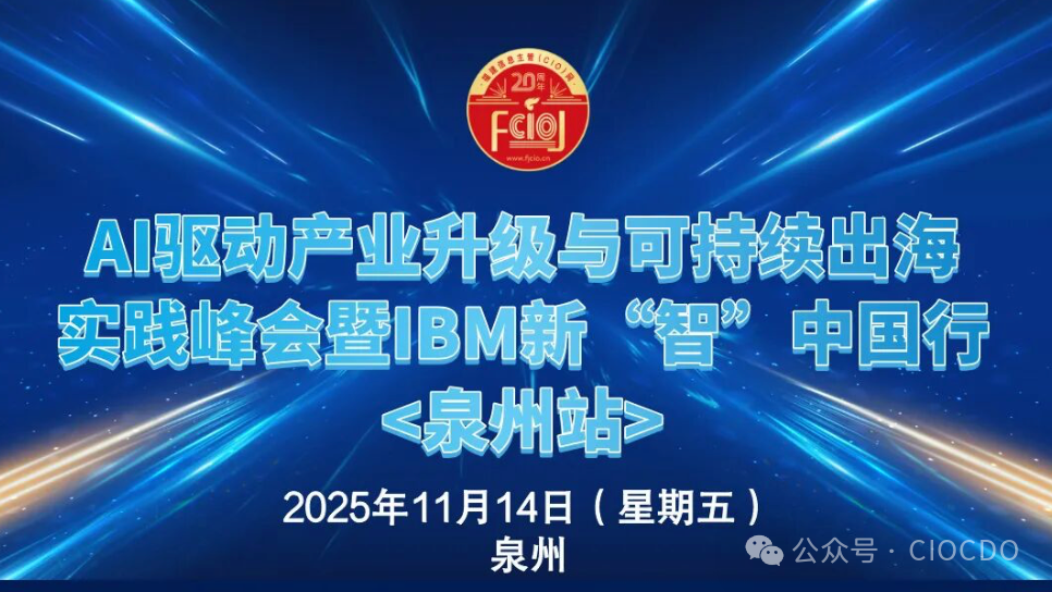 我们荣幸地宣布,由福建CIO网主办、IBM独家赞助的“AI驱动产业升级与可持续出海实践峰会暨IBM新‘智’中国行<泉州站>” 将于2025年11月14日在泉州隆重举行!