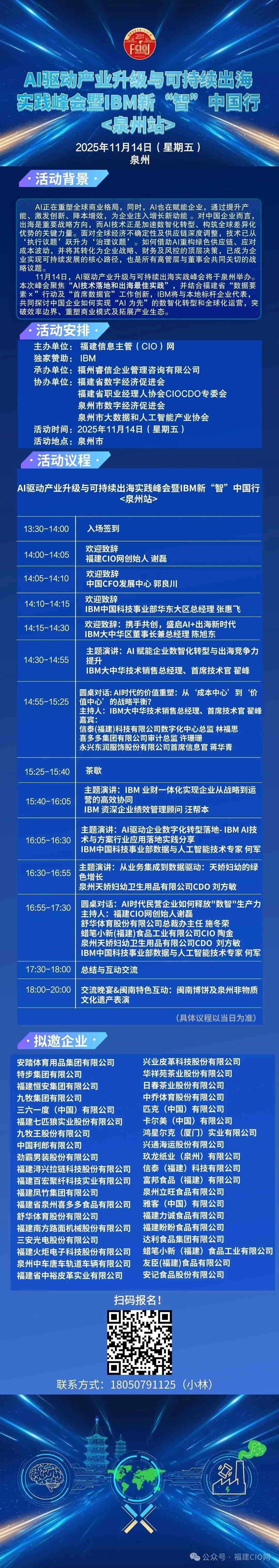 欢迎报名参加11.14 泉州 AI驱动产业转型与可持续出海实践峰会