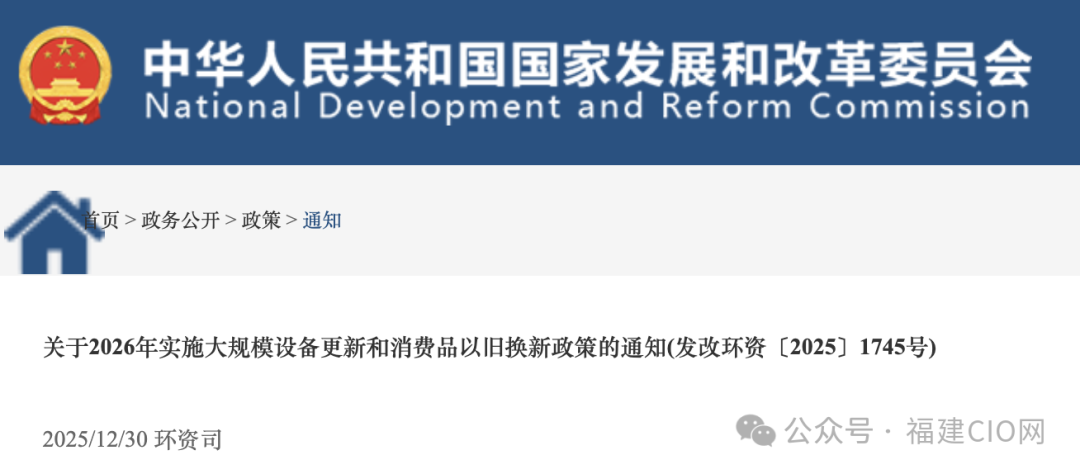 国家发展改革委 财政部关于2026年实施大规模设备更新和消费品以旧换新政策的通知