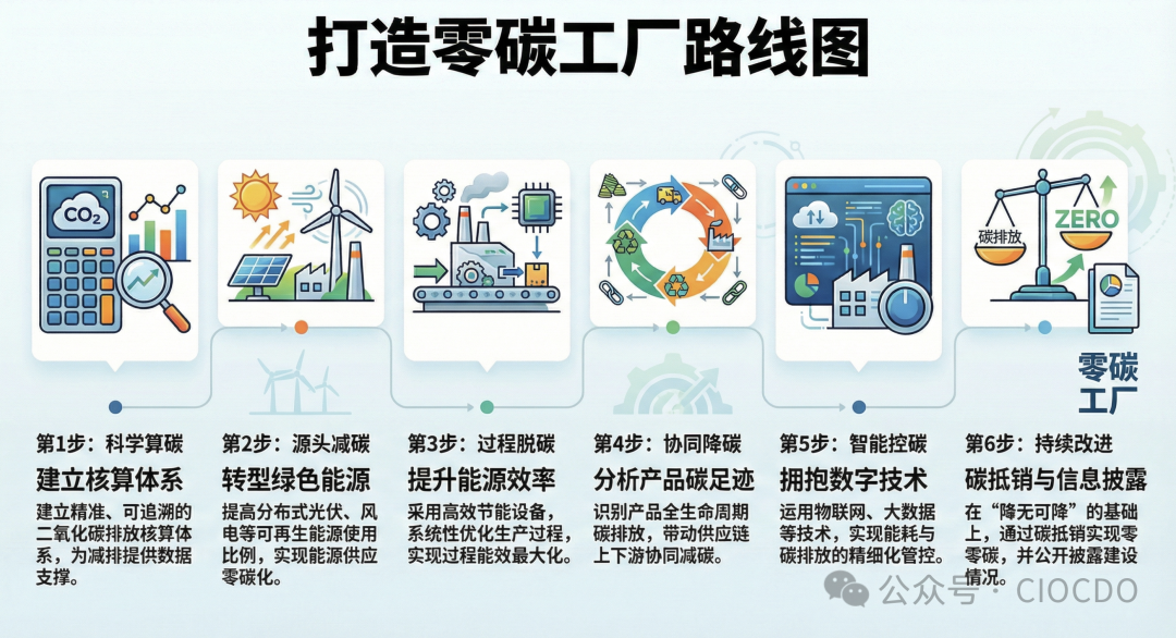 结合零碳工厂建设指导意见“全过程+全链条”视角,我们制定如下路线图: