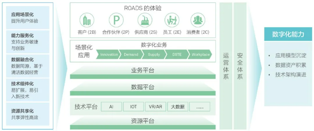 8、行之有效的运营支撑。数字化架构不仅关注系统的实现,更关注系统的运营。数字化架构的设计涵盖了系统易用性,安全性、可靠性、高性能等系统运营所必须的要素,为系统的有效运营提供支撑。