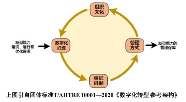 组织文化。是指建立与新型能力建设、运行和优化相匹配的组织文化,把数字化转型战略愿景转变为组织全员主动创新的行为准则等内容。