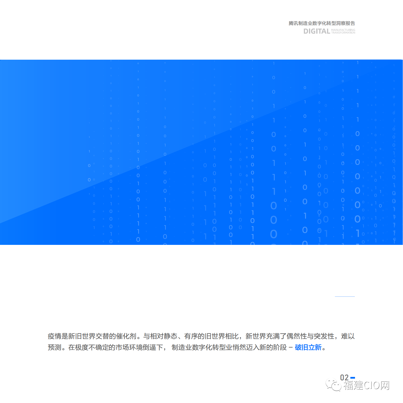 伴随着数字经济与实体经济的加速融合,制造企业对数字化转型的认知也在经历巨大转变。从范围上看,数字化正融入到企业转型的各个方面,驱动企业产生组织高效、生产智能、流程优化与供应链协同等转变;从技术视角看,更多前沿数字技术被应用到企业的核心业务场景,成为企业破局的关键,例如人工智能、区块链、下一代信息安全技术、游戏引擎技术、音视频通讯技术;从创新视角看,越来越多制造企业开始不满足于仅仅对旧有业务模式的优化与改良,而是希望借助数字技术对产品、服务与商业模式进行重构,实现倍增式创新。